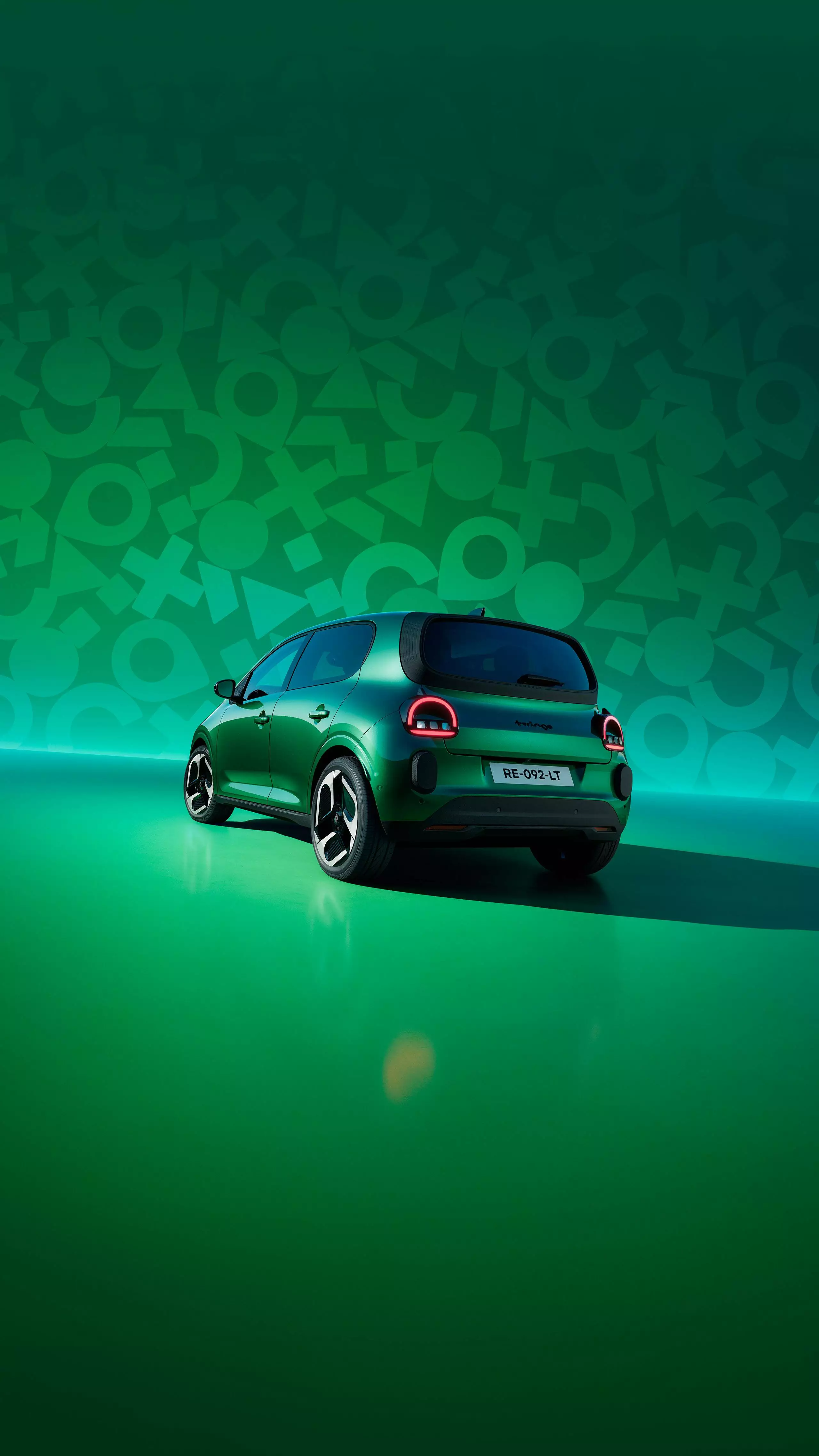 El Renault Twingo E-Tech eléctrico representa la esencia de la movilidad urbana moderna: compacto, ágil y con una estética inspirada en la primera generación del modelo. Su silueta redondeada con faros full LED y una calandra sonriente transmite dinamismo y frescura. Gracias a sus cinco puertas y dimensiones reducidas, ofrece una maniobrabilidad excepcional en entornos urbanos, con un diámetro de giro de apenas 9,87 metros.